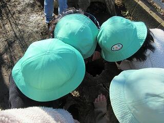 「あ!穴だ!」「なになに!?」とお友達の声に耳を傾け自然と集まり、みんなで覗きあっていました!