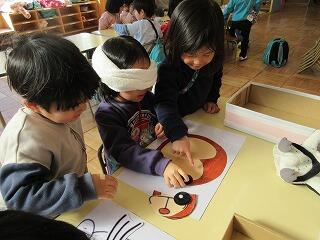 またお正月遊びの福笑いも楽しみ、変な顔になっている様子にみんなで大笑いしていました!