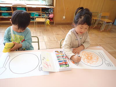 クレヨンの製作をしました! 投稿日時 : 04/23 年少 自分のクレヨンを使って初めての製作! お皿の描かれた画用紙に好きな色でぐるぐると描いていきました! 「トマト味!」「いちご味だよ!食べて!」と保育者とのやり取りも楽しみながら製作していた子ども達です♪ {{options.likeCount}} {{options.likeCount}}
