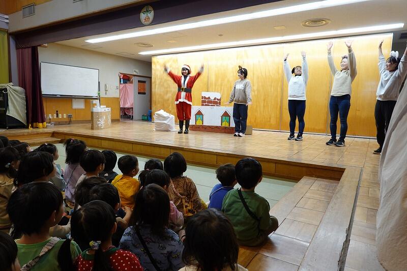 先生の劇を見たり、あわてんぼうのサンタクロースを皆で歌って楽しみました♪